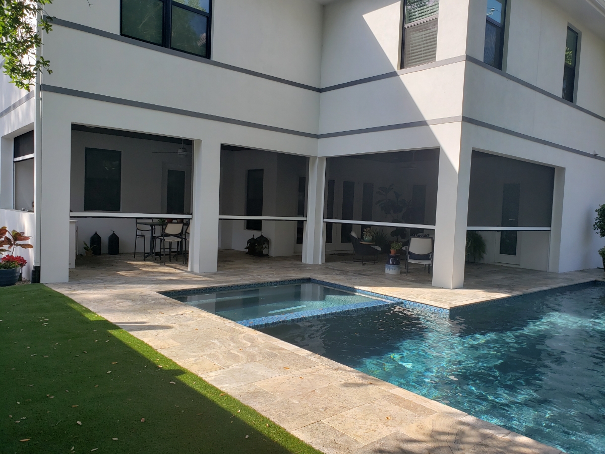 Our retractable screens turn decks, patios, poolhouses, and gazebos into comfortable, protected outdoor spaces. They’re perfect for garage conversions, commercial patios, or rooftop seating, and can reduce UV damage while lowering cooling costs.
